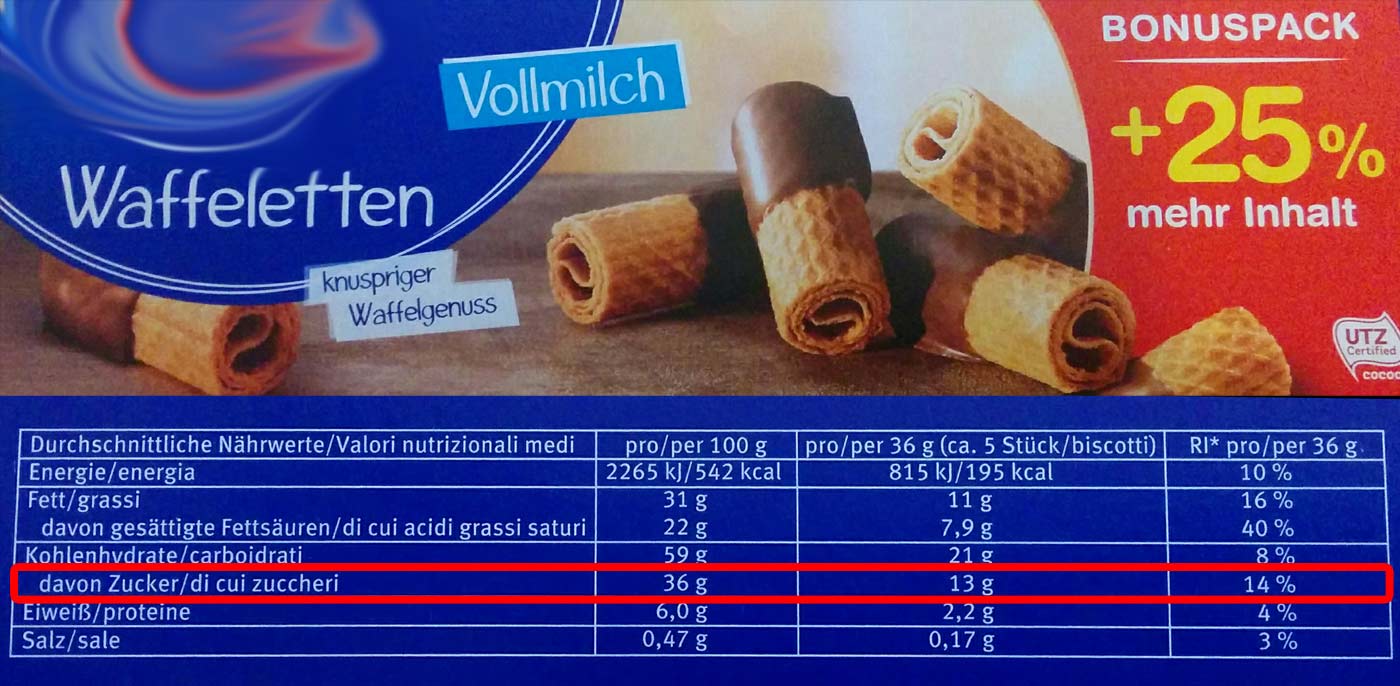 But cookies or chocolate also contain a lot of sugar and have a similar effect. Just a few cookies or wafers cover a high proportion of the maximum recommended daily sugar requirement.